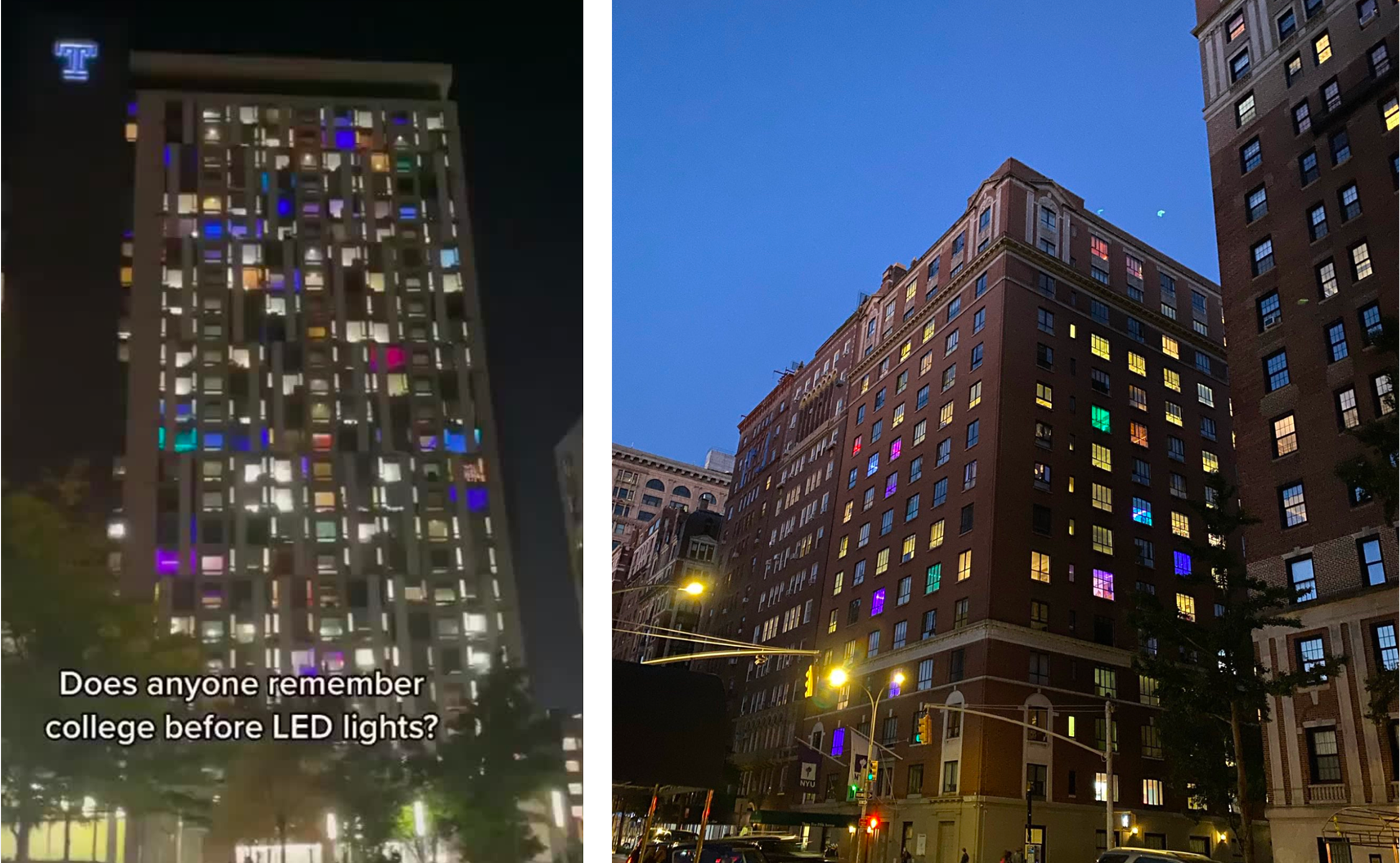 During the height of the pandemic, a photo went viral of the colorful NYU student dorms at night. You could imagine every student installing LED strips and programming them to a color that fit their mood. To me, these images were an incredible moment of seeing multiple lives at once.