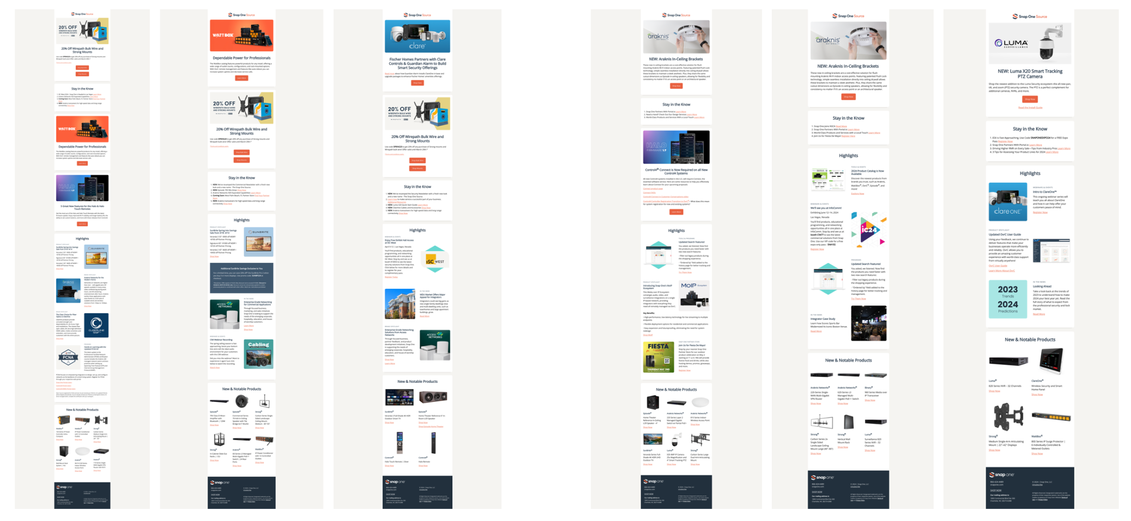 One year later, the Snap One Source continues to evolve and optimize. By February 2025, we reached the anniversary of its launch and successfully maintained a consistent approach to our newsletters. Each email highlights our top initiatives, spotlights exclusive brands, and reduces overall email clutter, making it easier for customers to stay engaged.